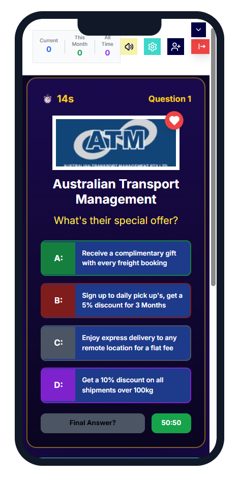 Once you launch Guess the Deal, youโre instantly immersed in a fun, interactive environment that blends curiosity with excitement. Each round features a mystery vendor deal displayed with the vendorโs logo, category, and a clever hint to get you thinking. Youโll have a few moments to make your best guess โ is it 20% off dining? A free coffee with breakfast? Or maybe a 2-for-1 offer on weekend adventures? As soon as you lock in your answer, the game reveals the actual deal, showing whether you were close, spot on, or completely off the mark! Every guess helps you discover real, exclusive offers from vendors across Australia โ all available through your 11:11 Discounts & Rewards Club membership.